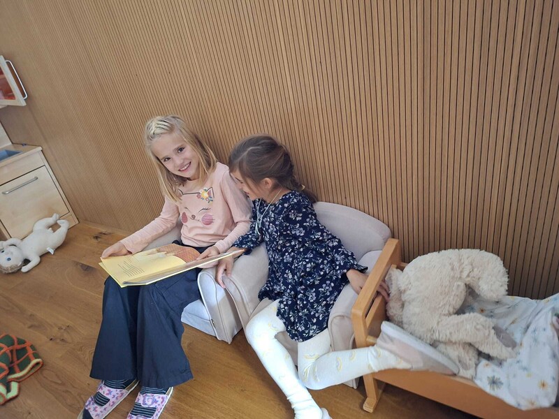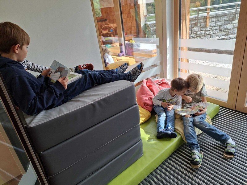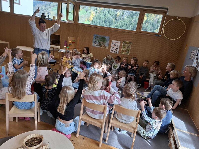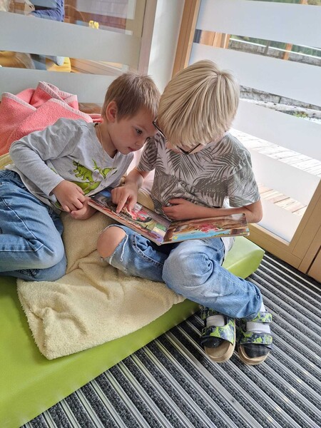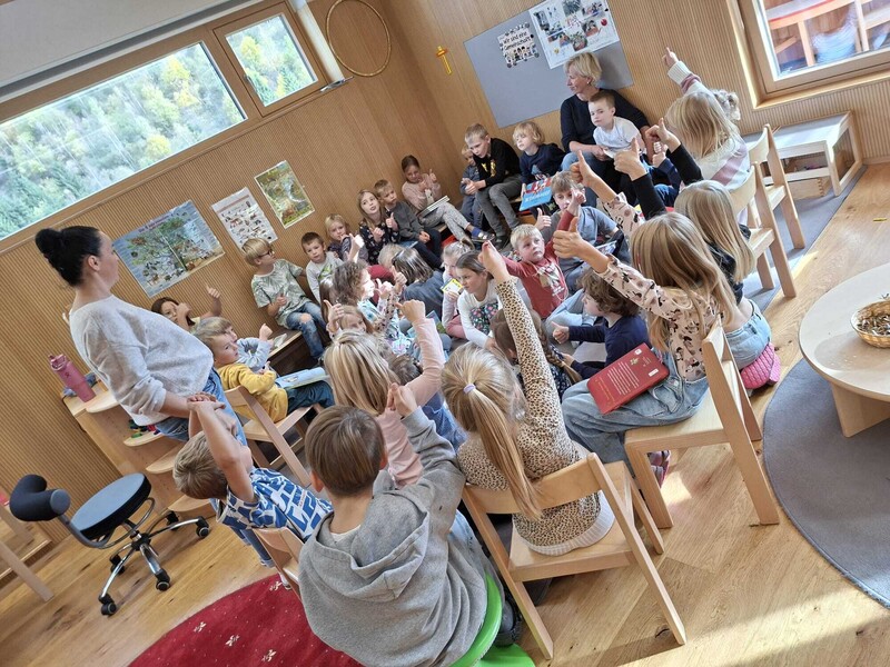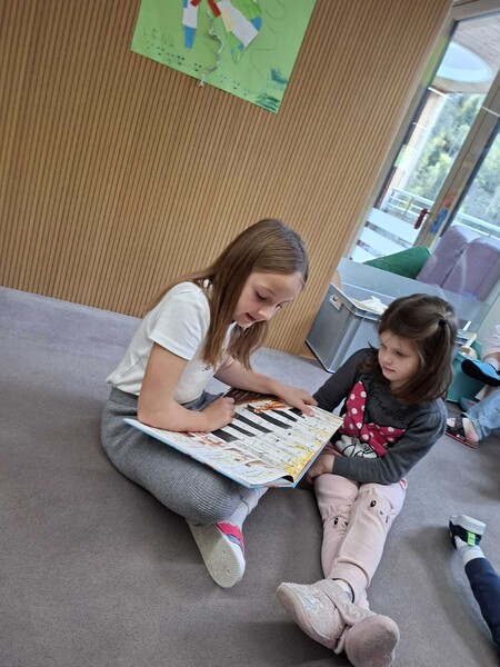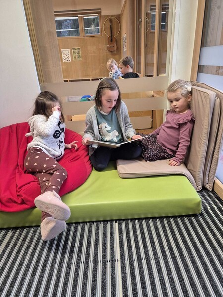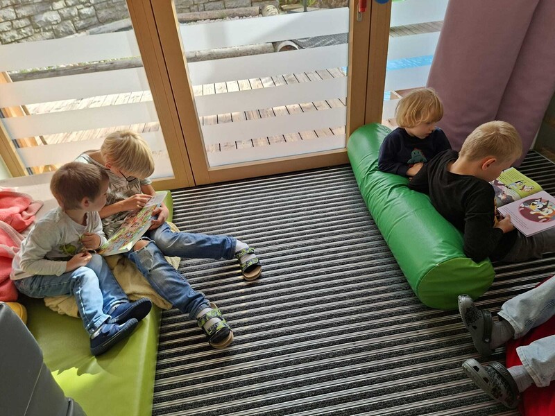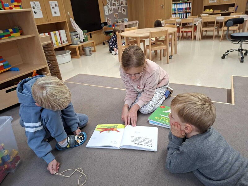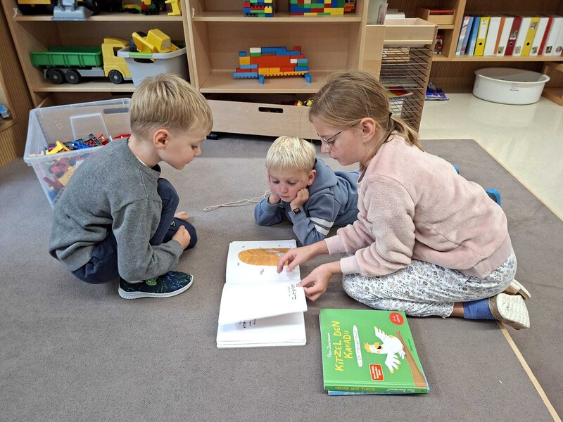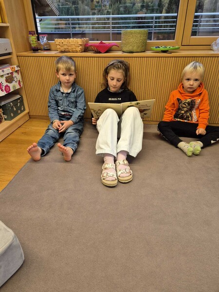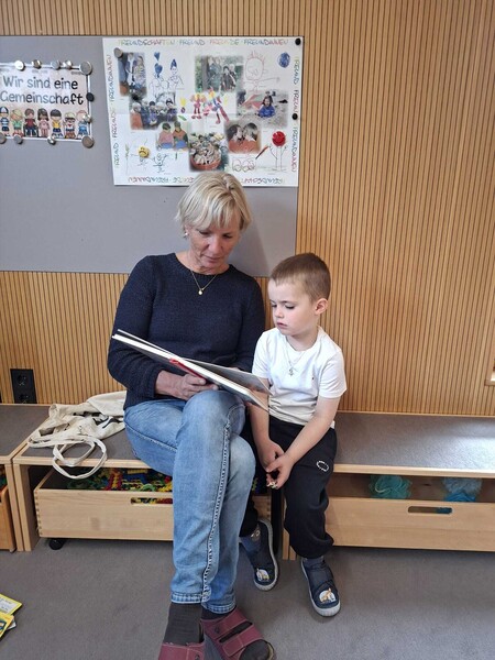 Die SchülerInnen dürfen regelmäßig in den Kindergarten marschieren, um den "kleinen" Kindern vorzulesen. Motiviert lesen und motiviert zuhören... Beide Seiten wirken entspannt und erfreut!