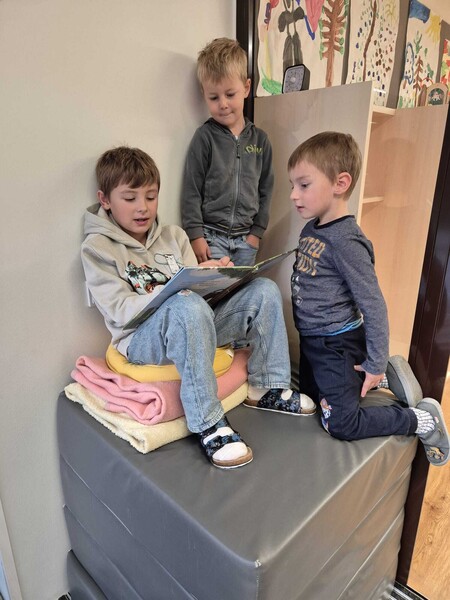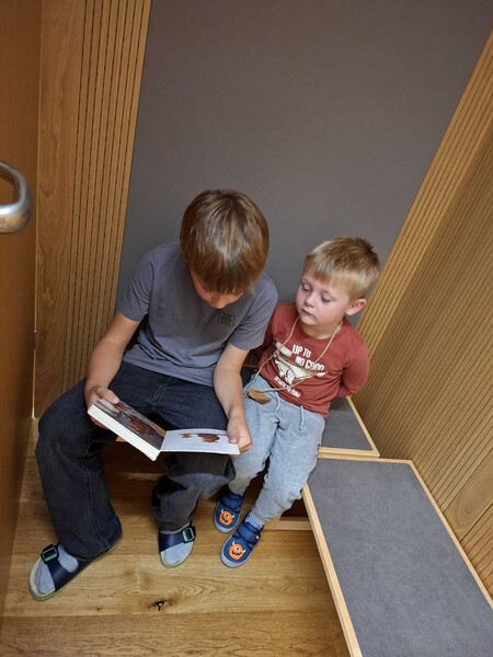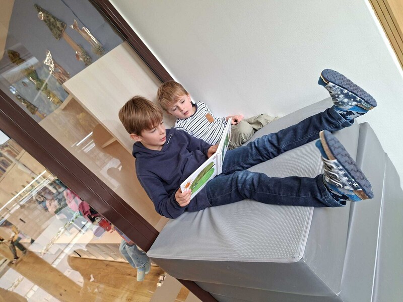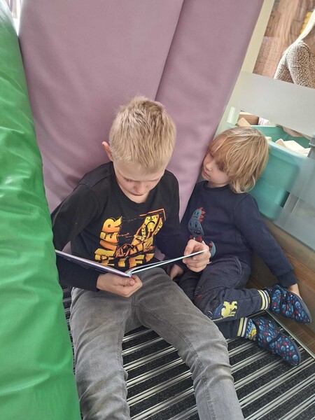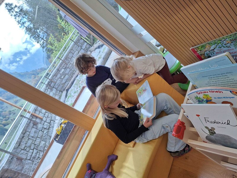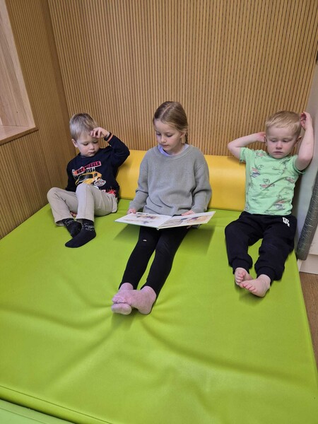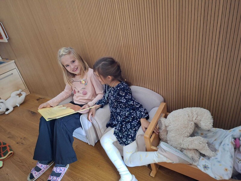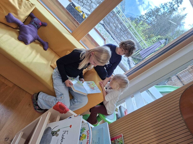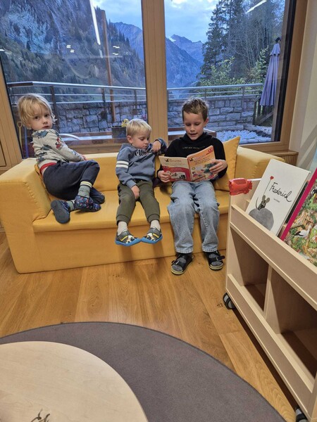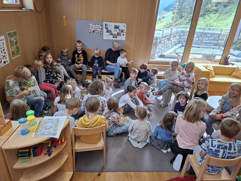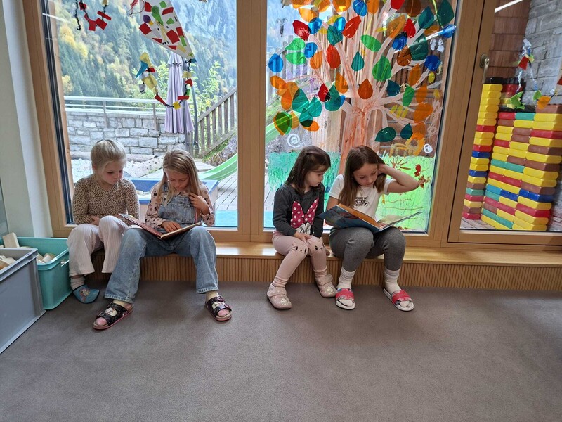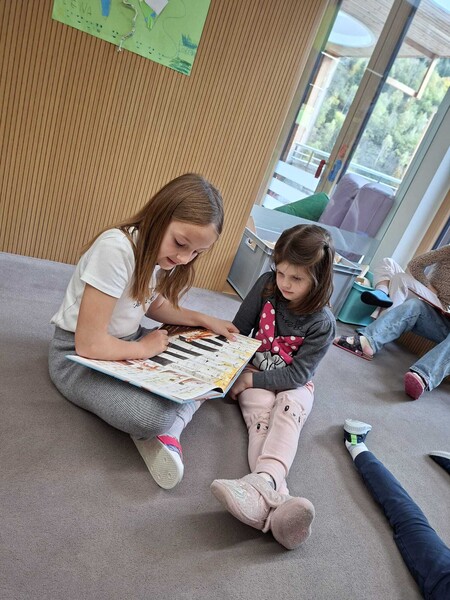 Die SchülerInnen dürfen regelmäßig in den Kindergarten marschieren, um den "kleinen" Kindern vorzulesen. Motiviert lesen und motiviert zuhören... Beide Seiten wirken entspannt und erfreut!