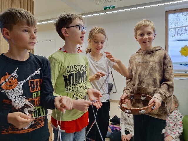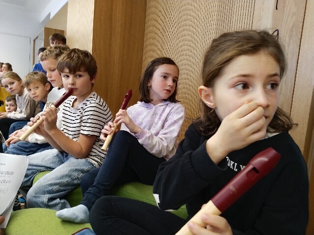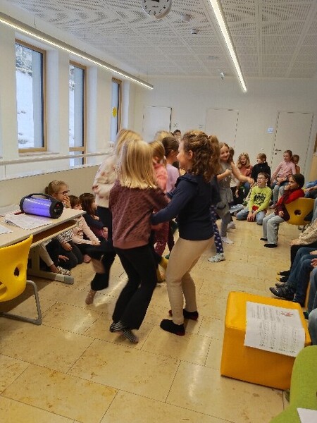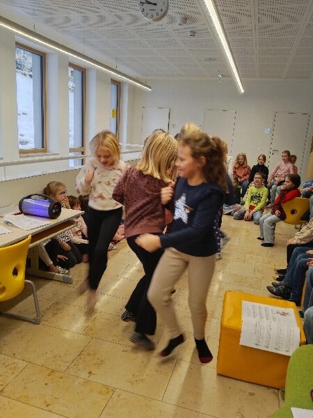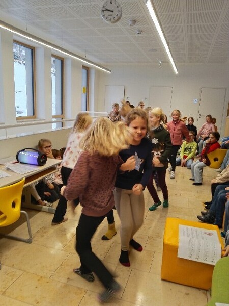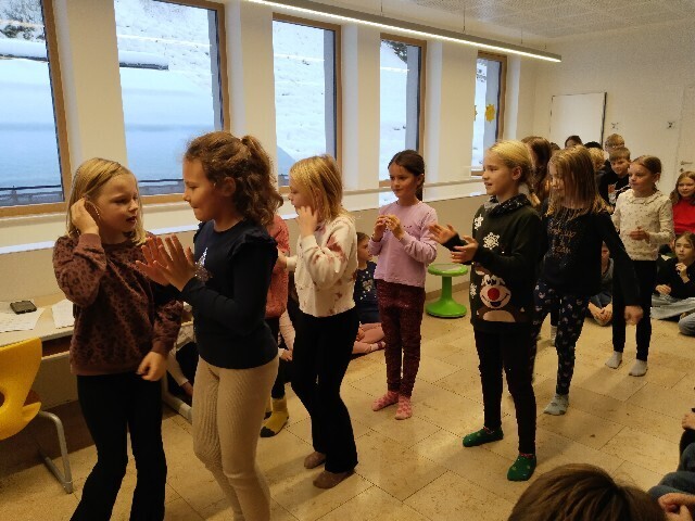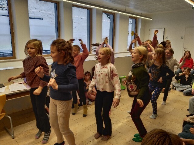 Freudig erwarten unsere 55 Kinder den Nikolaus und den Krampus in der Schule...